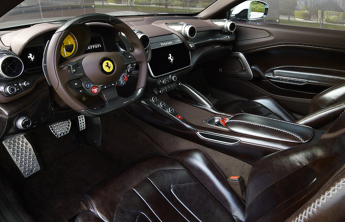 The GTC4Lusso’s two rear seats have been removed to achieve BR20’s ultra-sleek fastback design language. The new car is three inches longer than the original, thanks to a specific rear overhang treatment.