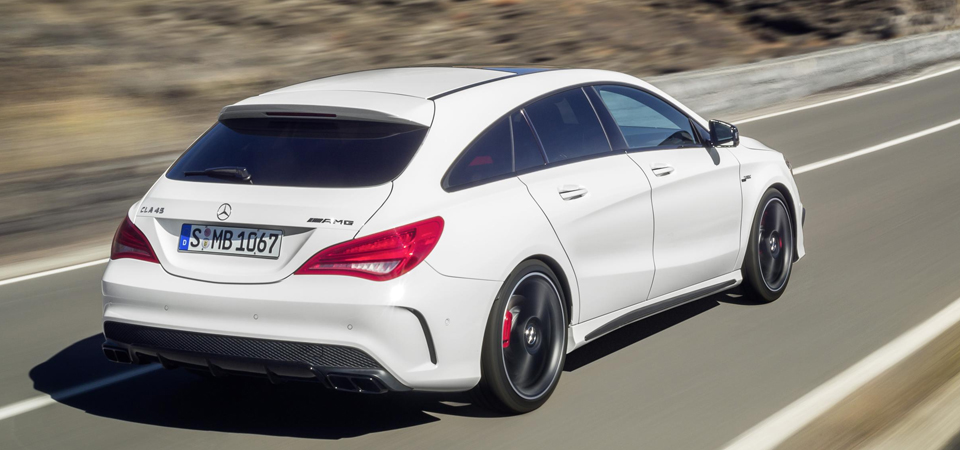 The striking looking and rather ordinary CLA Shooting Brake Mercedes is also joined by the CLA 45 AMG version in a kind of double reveal.