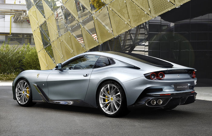 The GTC4Lusso’s two rear seats have been removed to achieve BR20’s ultra-sleek fastback design language. The new car is three inches longer than the original, thanks to a specific rear overhang treatment.